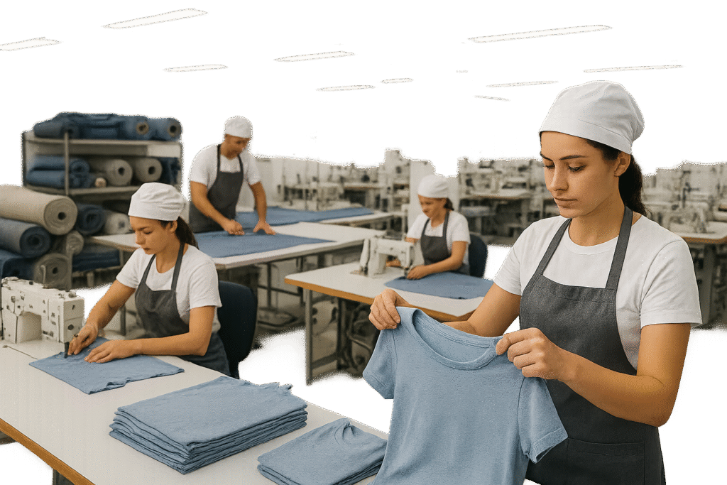 We manage the complete workflow — fabric sourcing, pattern development, stitching, finishing, and final inspection — under one roof. Our team maintains strict international size and quality standards throughout each production stage. Whether it’s basic T-shirts or premium hoodies, we guarantee uniform quality across thousands of pieces.