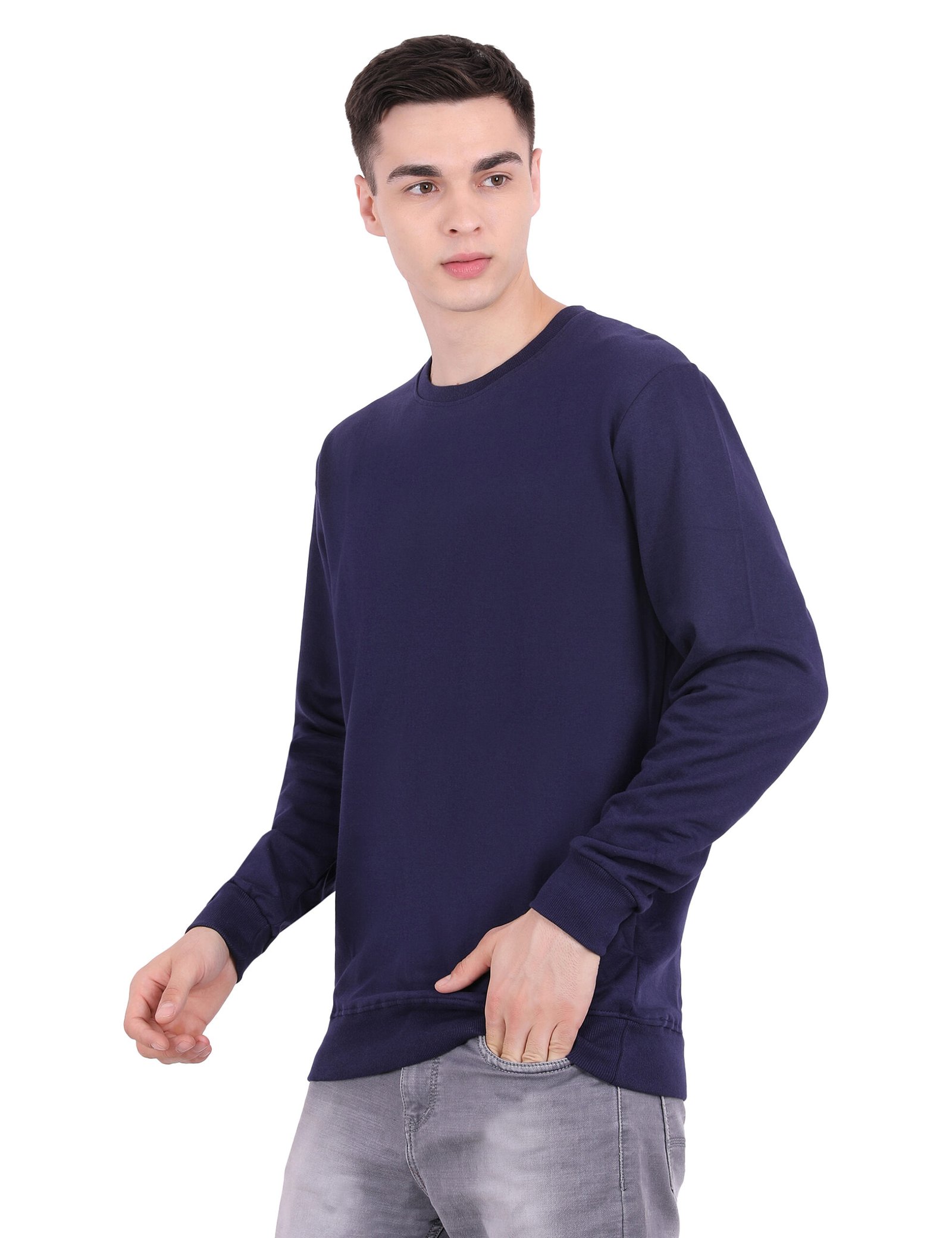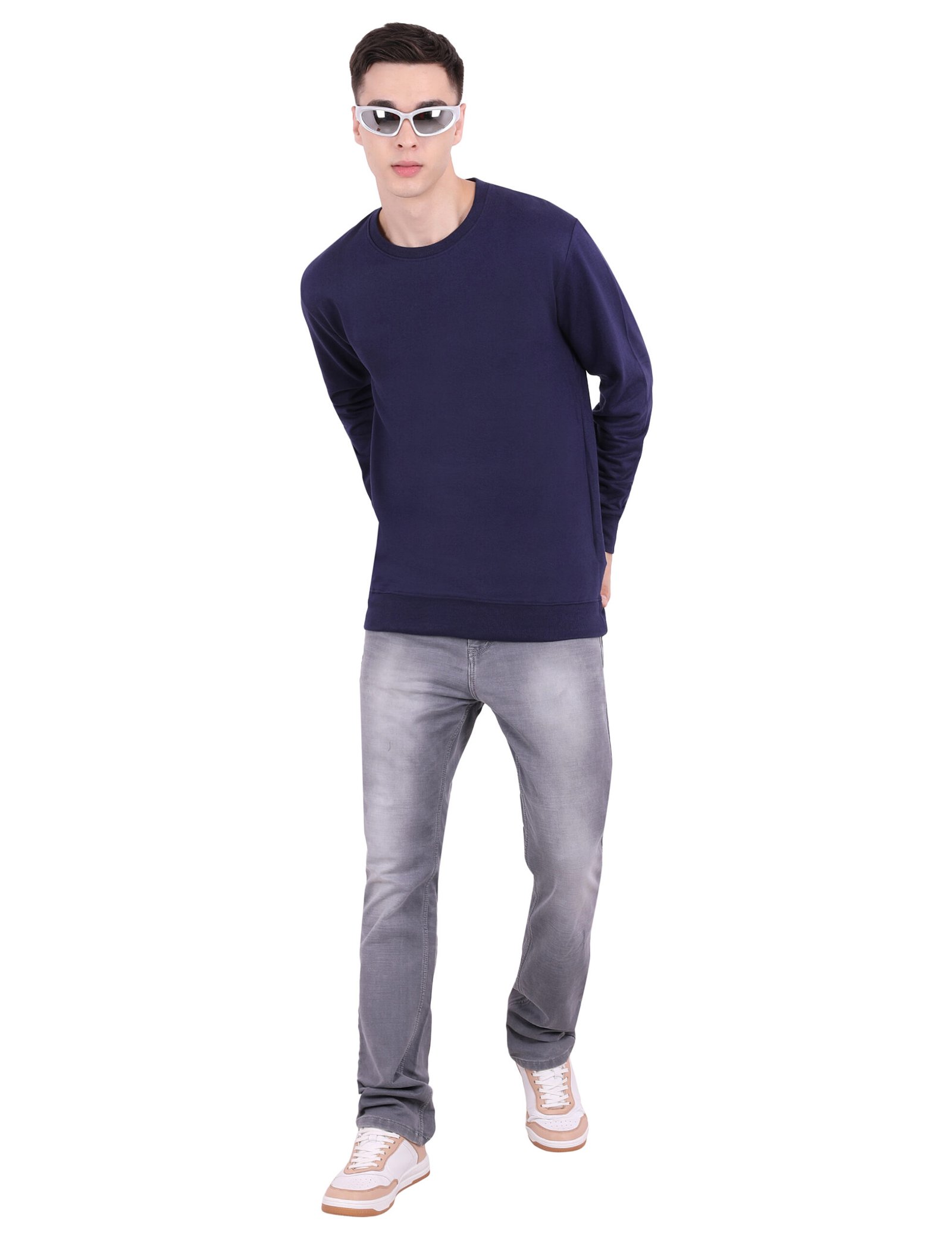 The fabric is a substantial, heavyweight fleece or French terry (or similar) that gives the pullover a structured, confident drape that maintains its shape beautifully. The rich Deep Navy color offers incredible versatility, easily pairing with denim, chinos, or joggers. Key features include a durable ribbed crew neck, as well as matching ribbed cuffs and hem (assuming it’s a typical sweatshirt design), all contributing to its premium feel and longevity. The oversized, relaxed fit makes it ideal for layering over tees or wearing solo for a comfortable, modern silhouette.